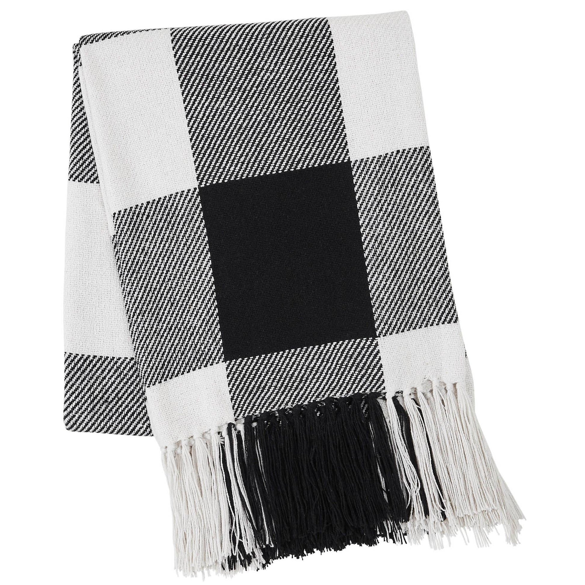 Add a touch of classic country charm to your bedroom and living room decor with the VHC Brands Annie Buffalo Check Black Woven Throw. This 50x60-inch cotton blanket, a part of the Annie Buffalo Check Collection, showcases the iconic buffalo check pattern in timeless country black. The twill weave fabric not only adds texture but also ensures cozy comfort in every use. The Annie Buffalo Check Black Woven Throw brings farmhouse elegance to your interior with its distinctive buffalo check design. Whether you're draped over furniture or snuggled up with it on chilly nights, this versatile throw effortlessly enhances your space. The country black color complements a variety of decor styles, and the twill weave fabric gives it a textured feel that's both stylish and inviting.