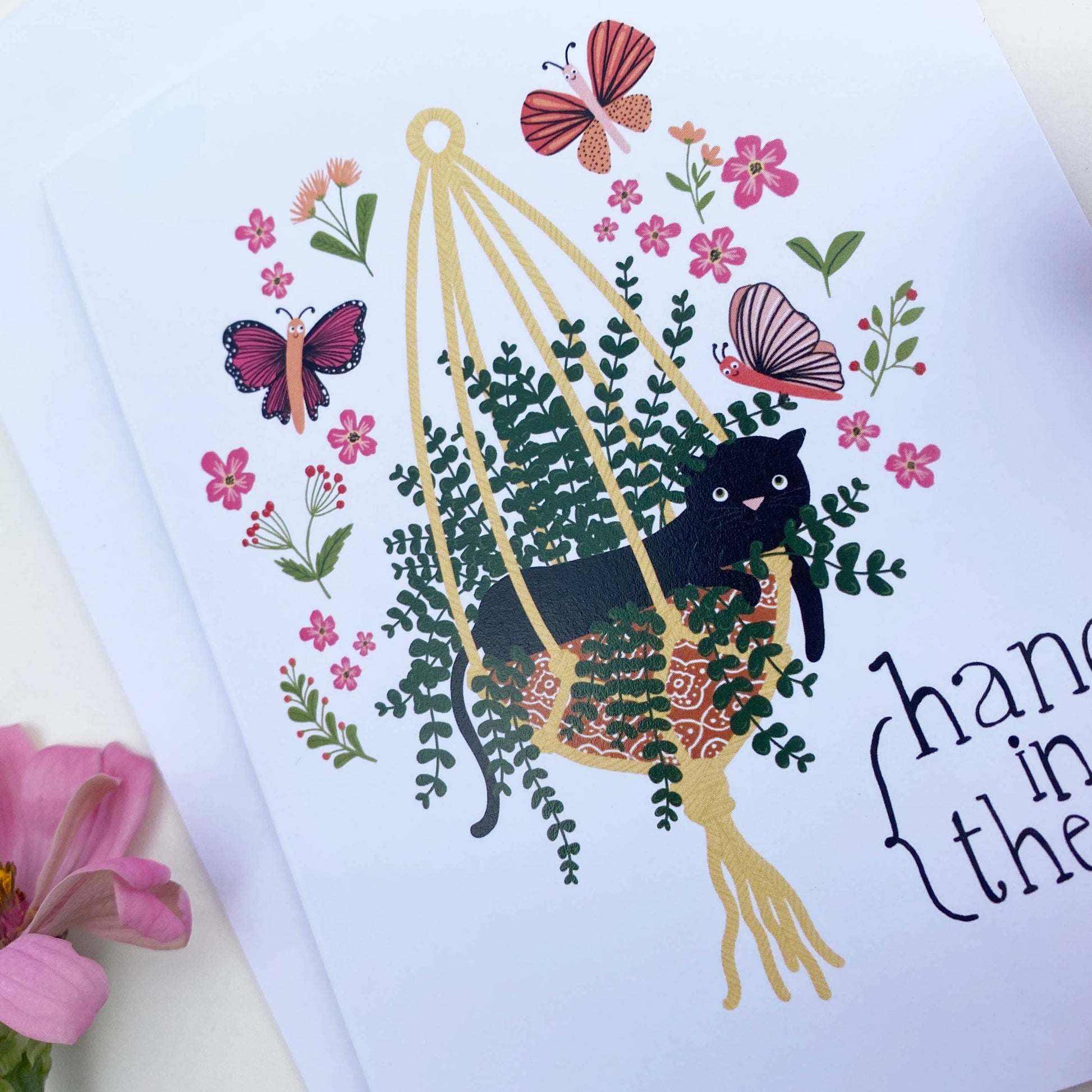 - Size A-2 greeting card with envelope - Blank Inside - Premium 120lb thick card stock - Vibrant ink, digitally printed with sharp, clear details - Wrapped in a protective plastic sleeve that is made of plant- based polylactic acid (PLA) and is certified compostable