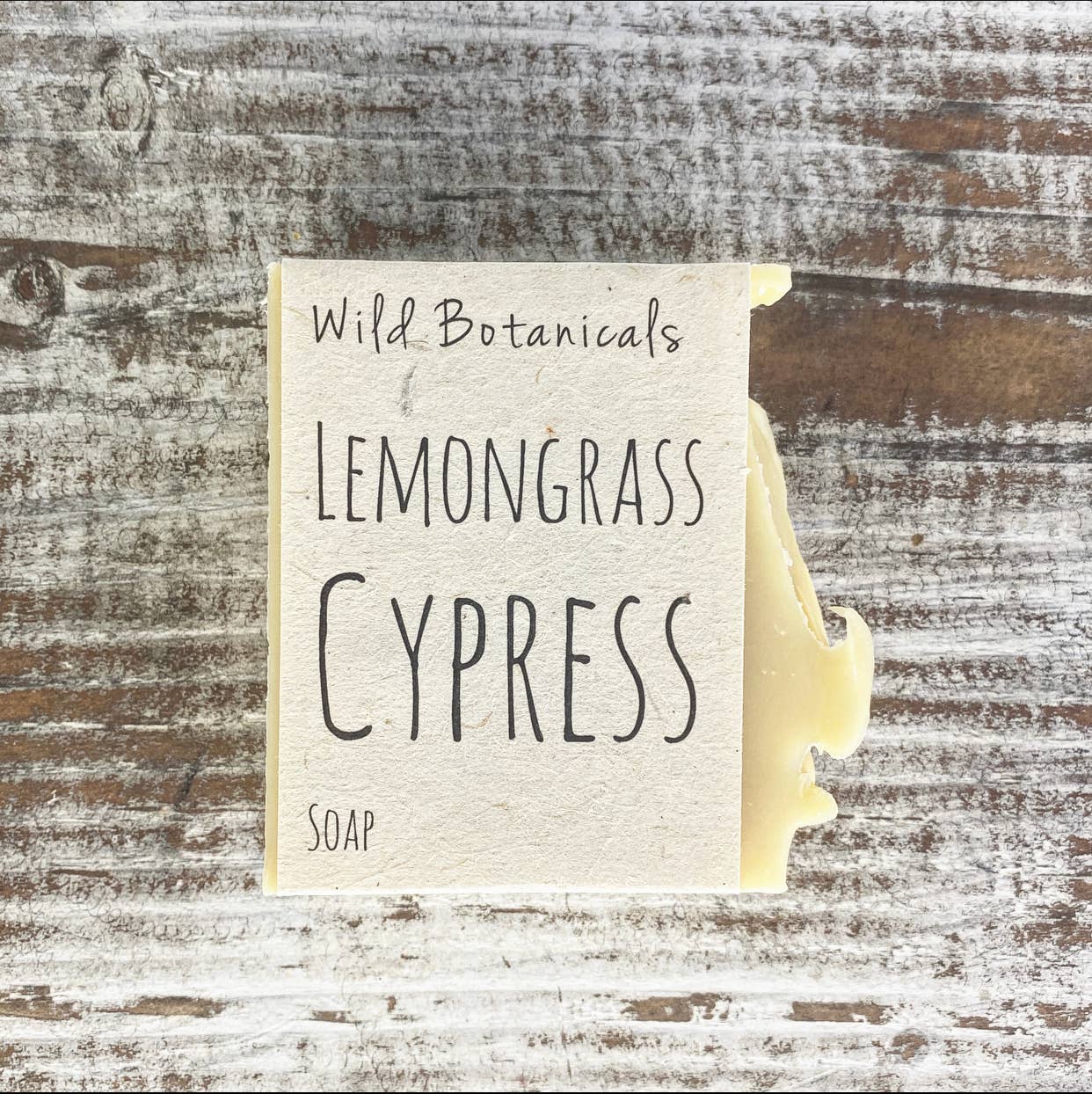 Lemongrass Cypress Soap is scented with essential oils. It has great cleansing qualities and a powerful fresh scent. Each soap is labeled/wrapped in Wildflower Seed Paper.