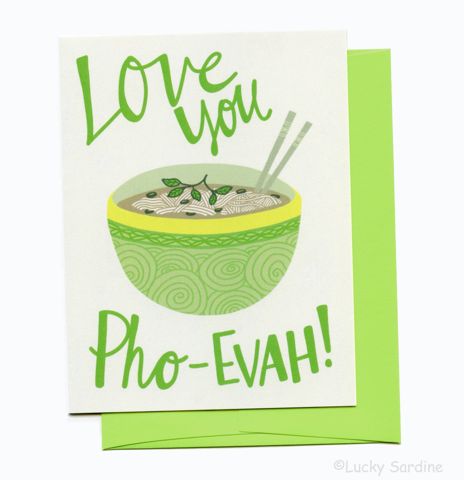 Love You Pho Evah Greeting Card, Valentine's Day: Lime Green