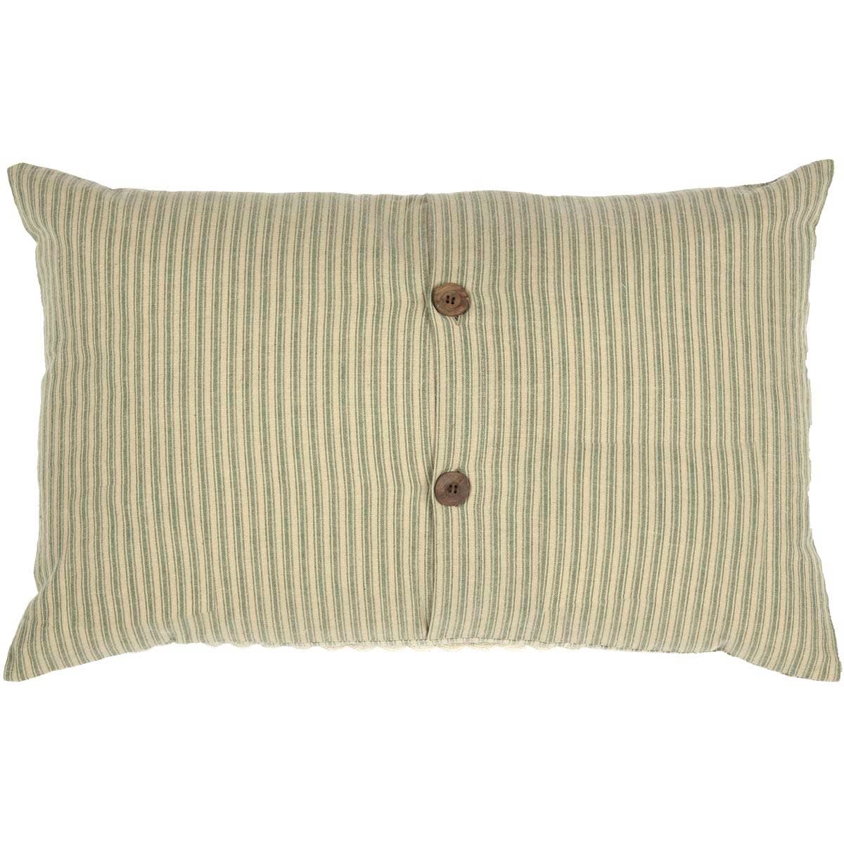 Warm khaki and sage striping with rustic details bring a soft, primitive style to your home. The Prairie Winds Home Pillow measures 14 by 22 inches. The cozy, rectangular accent pillow features a classic ticking stripe base in earthy, traditional farmhouse colors softened by creme lace accents. The charming trim gently frames a loopy, braided jute word art accent reading, "home" and two red plaid primitive-style hearts outlined in jute. Constructed with cotton and jute with a polyester fill. Includes a removable cover with button-style closures for easier cleaning. Hand clean for best results. Coordinates withe Prairie Wind Collection by VHC for traditional, country style. Includes: 1 x Pillow Cover;1 x Pillow Insert; Care Instructions: Hand Wash, Lay Flat to Dry, Iron Safe Material: 95% Cotton / 5% Jute Shell, Polyester Pillow Fill