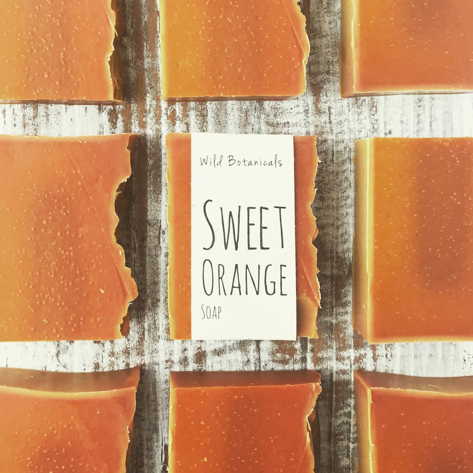 Sweet Orange Soap is scented with essential oils and infused with turmeric. The scent is a light delicious orange fragrance with a deep rich orange color.