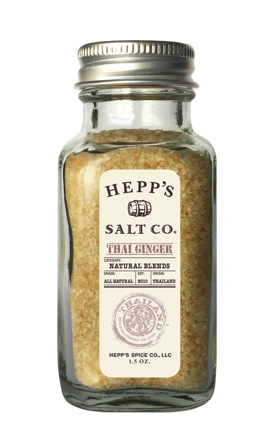 This coarse sea salt is mixed with exotic ginger, creating a striking flavor that will make your taste buds undulate! Thai Ginger can be used in a variety of methods including cooking, baking and finishing. FLAVOR PROFILE • Seafood, Asian Cuisine, Fresh Fruit, Salads, Drink Rimmers, Desserts. INGREDIENTS • Sea Salt, Ginger.